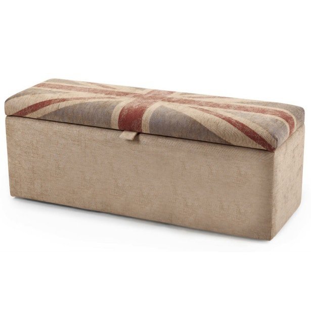 Банкетка для хранения Jack из коллекции Britannia Collection - это отличный способ создать новый и интересный взгляд на Ваш интерьер. Сделанная из березовой основы, покрытая прочной тканью (41% вискоза, 35% акрил, 24% полиэстер) модель имеет камеру для хранения дорогих для Вас вещей, таких как согревающий плед в студеную пору. На крышке банкетки нанесен принт британского флага Union Jack с состаренным дизайном для ценителей стиля Соединенного Королевства.