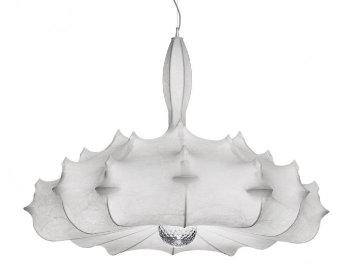 Дизайнерская люстра Zeppelin выполнена из прочной стали и легкого экологически чистого материала. Белый цвет каркаса Zeppelin лишь подчеркивает его оригинальность и экстравагантность. Граненый стеклянный шар, расположенный в центре основания, создает удивительный световой эффект.