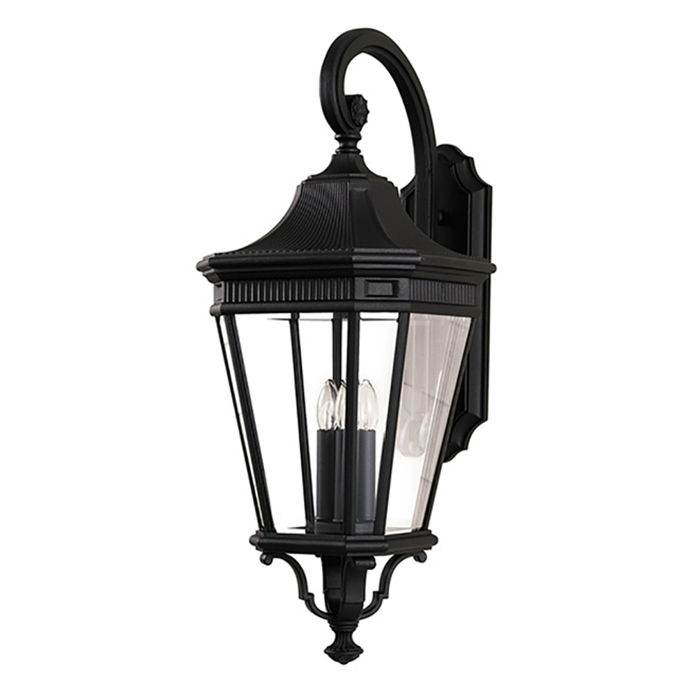 Настенный фонарь черного цвета с прозрачными стеклянным плафоном Feiss в Самаре