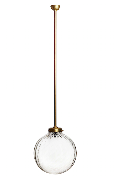 Подвесной светильник Brass Sphere Pendant украсит элегантную спальню, роскошный ресторан или уютную гостиную. Прочная латунная основа завершается небольшим стеклянным шаром, выдутым вручную. Переливы стекла напоминают старинные хрустальные вазы, а благородный цвет латуни придает нарядность и торжественность.