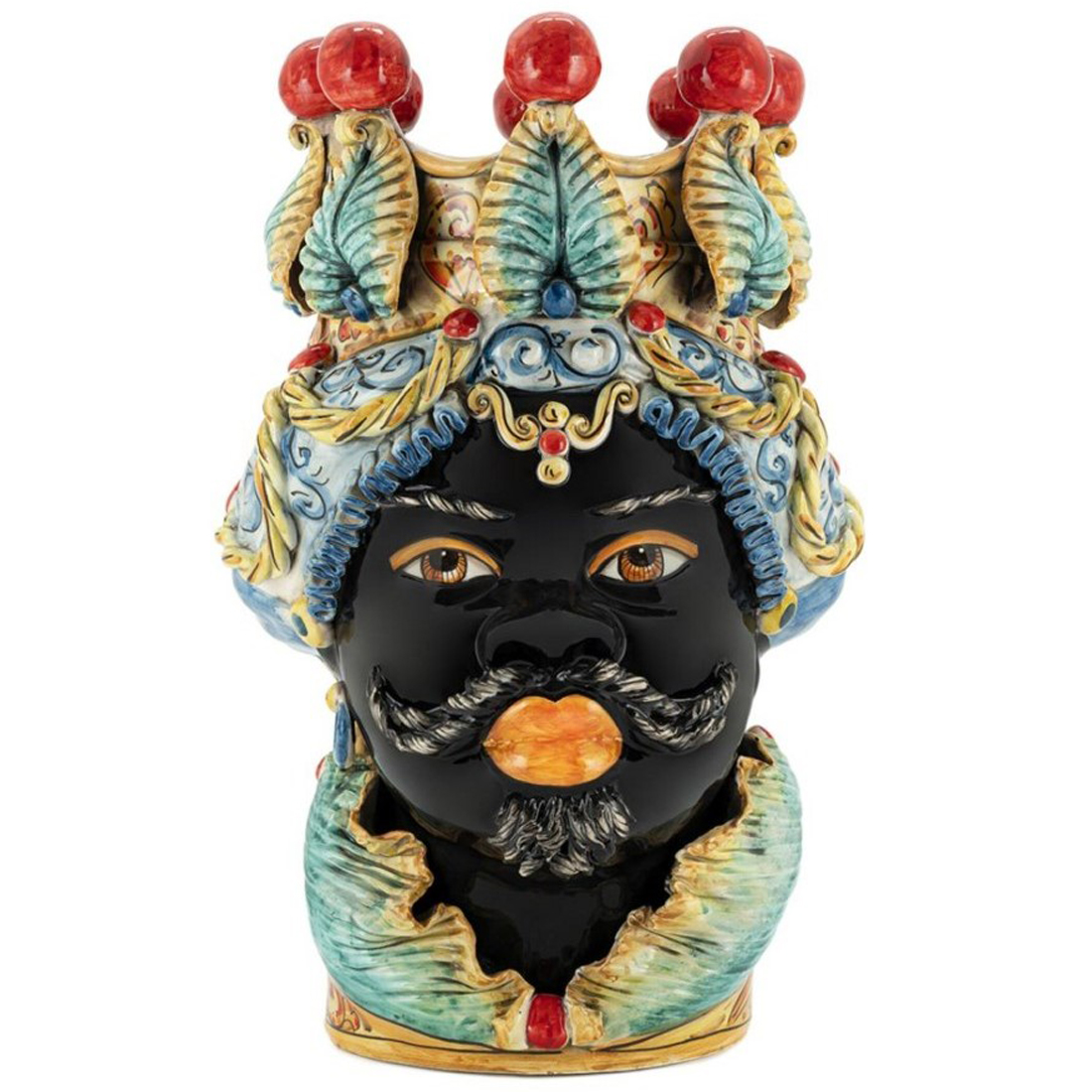 Керамическая ваза Abhika Moro Man Big Traditional mix в виде головы мужчины в национальном головном уборе. Ваза полностью изготовленная и расписанная вручную оригинальным производителем-ремесленником из Кальтаджироне - Сицилия.